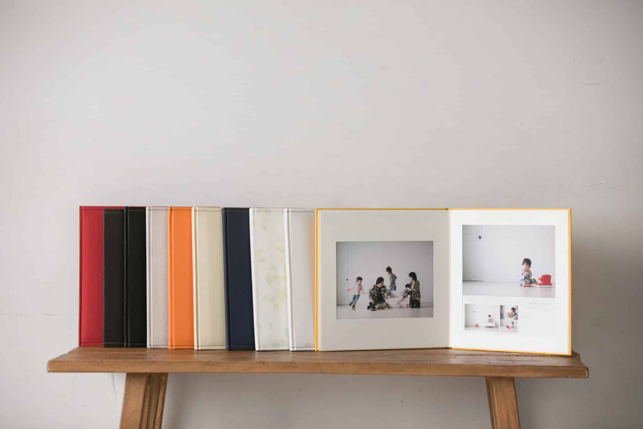 4色から選べるレザーの表紙と裏表紙に写真とお名前の入るオシャレなデザインアルバムとご用意しております。